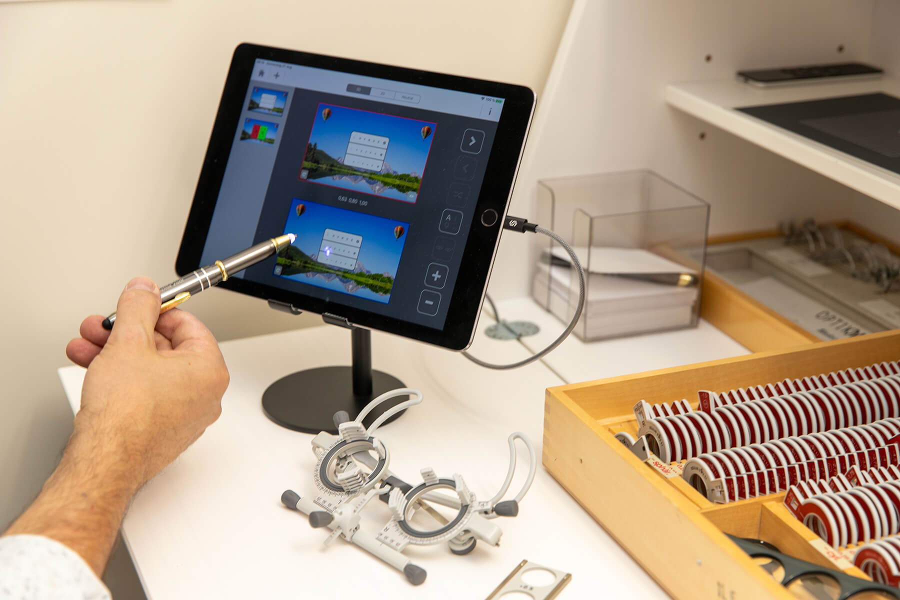 Professionelle Augenüberprüfung mit modernsten Geräten wie dem Wave Analyzer Medica (WAM800) sowie unserer Pascal 3D-Überprüfung erhalten Sie bei uns. Einfach anrufen und einen Termin vereinbaren. Wir nehmen uns gerne Zeit für Sie.